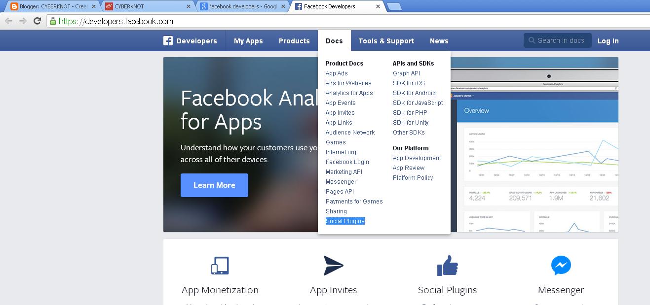 When your fb developers page is open just go on docs option on page and choose social plugins